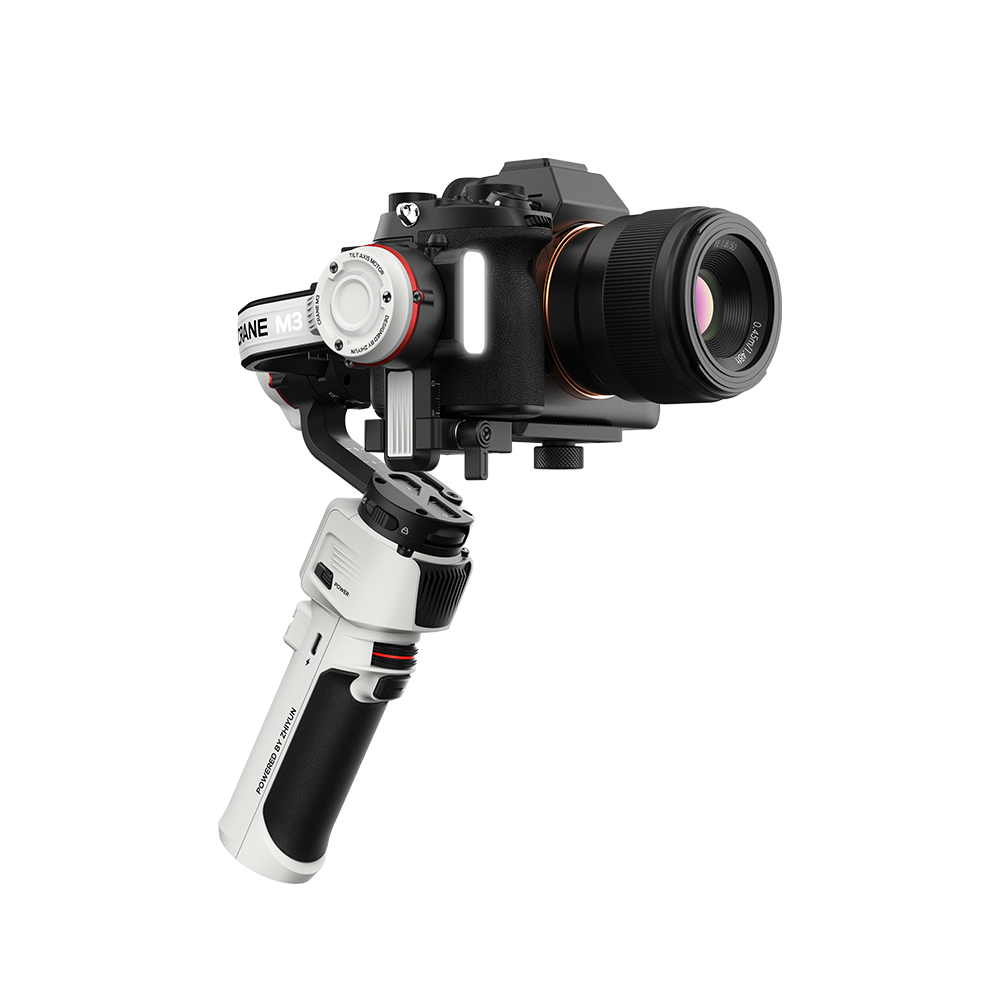 Nove karakteristike uključuju integrisano svetlo sa filterima u boji i podesivom temperaturom boje, modernu belu spoljašnjost, OLED ekran u boji od 1,22 inča, PD brzo punjenje, osam sati rada i još bržu pločicu za brzo otpuštanje. CRANE-M3 nudi rotaciju od 360°, nagib od 309° i rotaciju za 333° u sedam režima rada, uključujući praćenje, pan-follow, POV, portret, GO, zaključavanje i Vortex režim, a takođe se može podesiti ručno ako je potrebno. Radi otprilike osam sati koristeći ugrađenu bateriju od 1150 mAh koja se može puniti pomoću priloženog USB Tipe-C kabla, a takođe možete da napajate gimbal koristeći power bank dok ga koristite. OLED ekran u boji prikazuje izabrani režim rada, nivo baterije, Bluetooth/Wi-Fi status i druge funkcije. Oznake skale i blokade memorije pomažu vam da uravnotežite kameru i zaključate položaj ravnoteže za kameru koja se koristi. Preko ugrađenog Wi-Fi-ja, gimbal se može sinhronizovati sa kamerom koja podržava Wi-Fi i tako kontrolisati daljinsko zumiranje, zatvarač i kontrolu pokretanja/zaustavljanja videa, ili možete da koristite kontrolni kabl kamere i USB Tipe-C port za kontrolu zatvarača kamere i napajanje kamere. Preko ugrađenog Bluetooth-a, kamera se sinhronizuje sa besplatnom mobilnom aplikacijom ZY Play za iOS i Android za dodatne mogućnosti. Aplikacija omogućava daljinsko upravljanje mnogim funkcijama gimbala i ima funkcije za snimanje filmova kao što su time-lapse, panorama i usporeno snimanje. Integrisano LED svetlo vam omogućava da koristite svetlo za vaš objekat bez potrebe za spoljnim svetlima. Specifikacija: Masa gimbala: 730g Dimenzije: 24.1 x 155 x 72.5mm (folded) Nosivost: 2.2 kg Baterija: Li-Ion, USB punjenje, mogućnost punjenja u toku rada pomoću „power bank“-a Trajanje baterije: do to 8 sati Vreme punjenja: 2 sata App: ZY Play